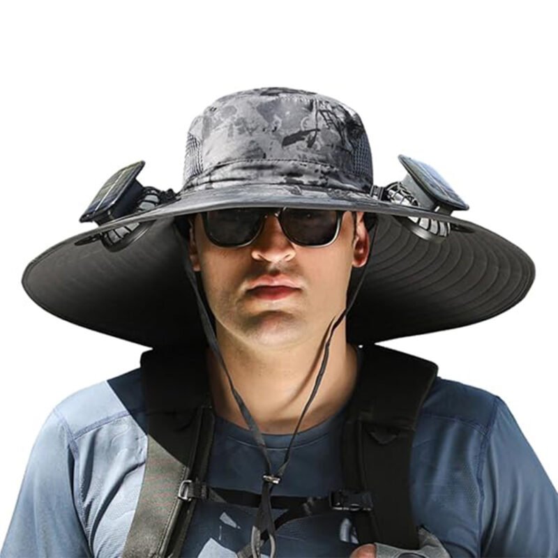 Solar-Anglerhut mit USB-Lüfter – Weitkrempiger Sonnenhut, UPF50+ UV-Schutz